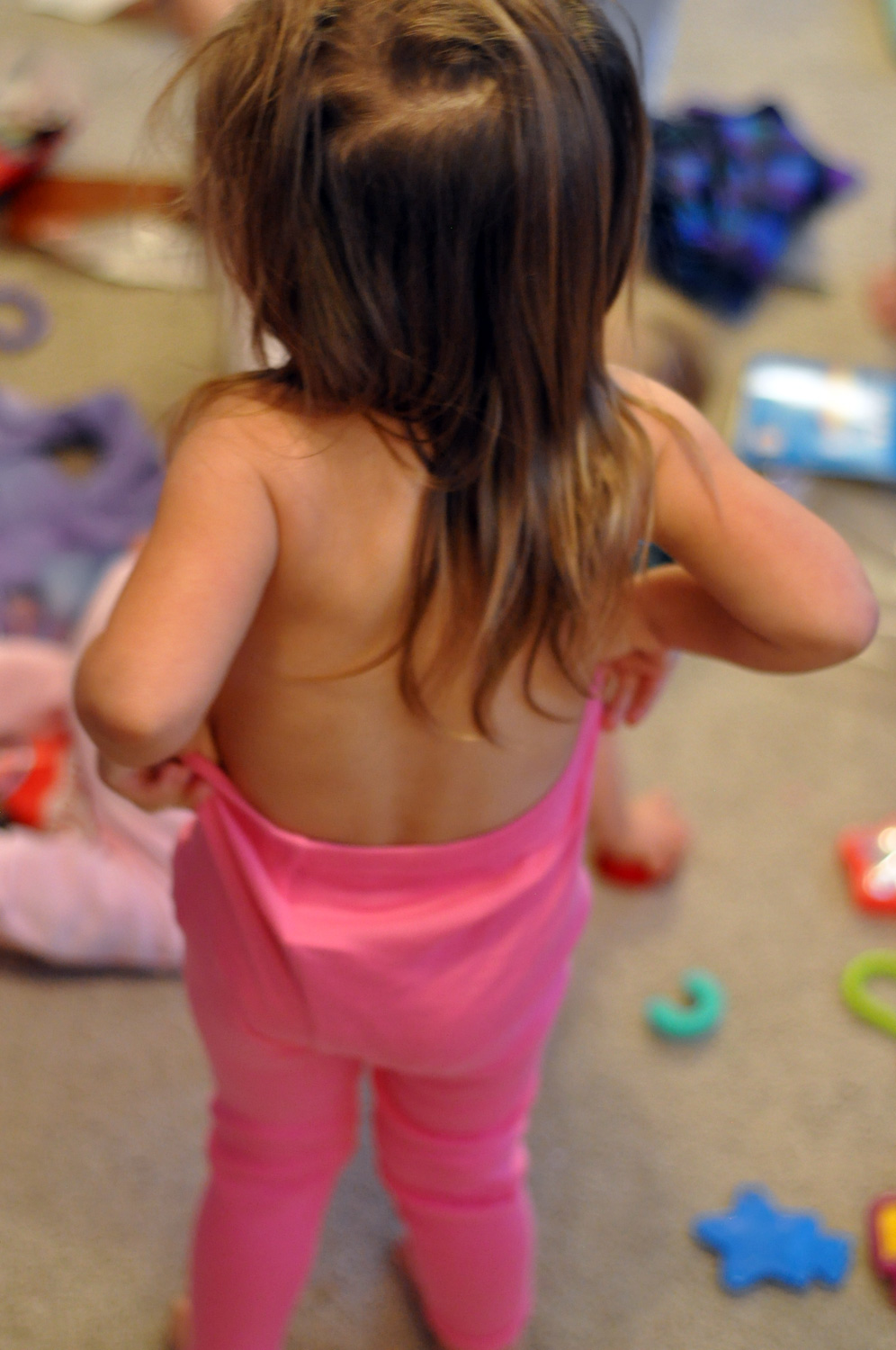 We do Christmas Eve pajamas. What can I say, it makes me happy. I am in charge, so we will be doing it for the foreseeable future. I thought you might like the progression of Daisy's pajamas. All my children have been very interested in dressing themselves. (This is fabulous because in general, I never have to nag them to get ready. On the contrary, I sometimes have to beg them to NOT get dressed several superfluous times a day.) Here is Daisy donning pants.