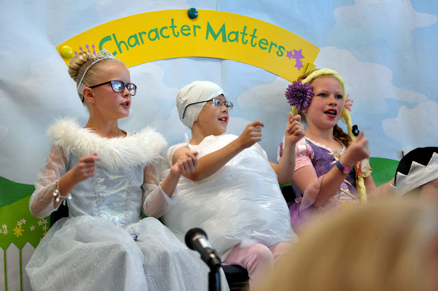 Many moons ago, Robyn was in a play called Character Matters. She was very cute as Snow White. Amazingly, some classes do the same thing each year (as evidenced by the many Christmas and patriotic programs on the blog.) Actually, not all the classes do Character Matters, but Ivory happened to be in a class that took it very seriously. There were many auditions and they rehearsed often. Ivory had her heart set on a certain character. Any guesses?