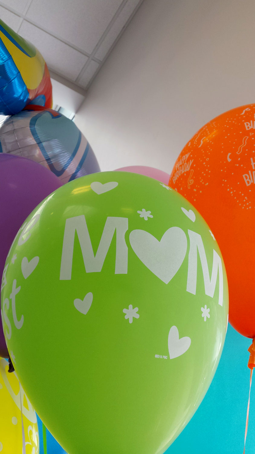 I had to laugh though. When I was picking out balloons, I was trying to get a rainbow assortment to go with Rainbow Dash. I had a green balloon that was okay, but on the way out, I saw another stand of balloons and one said, "You're the best!" That seemed like a better choice. It wasn't until after it was blown up did I realize they were all Mother's Day balloons, so it actually said, "You're the best...Mom!" Hahahaha. (I just don't want her to forget it.)