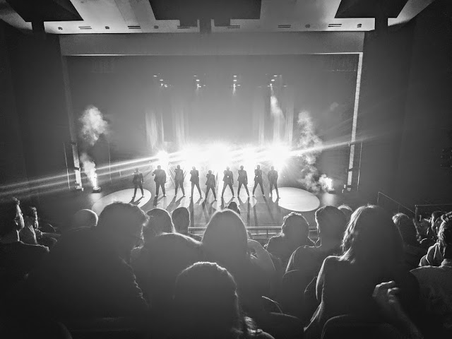 The Hulse's invited us to see Vocal Point. I haven't seen a men's a cappella group in a long time. This one was not the best. Don't get me wrong, some of the songs were fun, but overall, I was expecting a bit more. Their beat boxer was amazing though. That guy could do almost any sound. He spent a whole ten minutes doing his thing. I was blown away. Tyler got a pretty cool shot of them on stage. They liked to shine really bright lights on the audience, which was annoying but gave a cool effect to the picture.