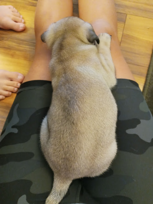 Whenever our friends' dogs have puppies, they invite us over. Luckily, we already have a beastie creature that would eat a puppy, so I don't feel obligated to buy another. But it doesn't keep these kiddos from dreaming.
