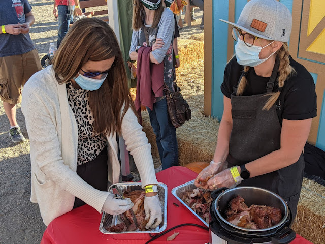 Sounds fun, but in actuality, it was a complete ZOO! There were so many people there. One would think that there wasn't a pandemic going on. We waded through the masses to find the tent and then we wolfed down a couple pulled pork sandwiches.